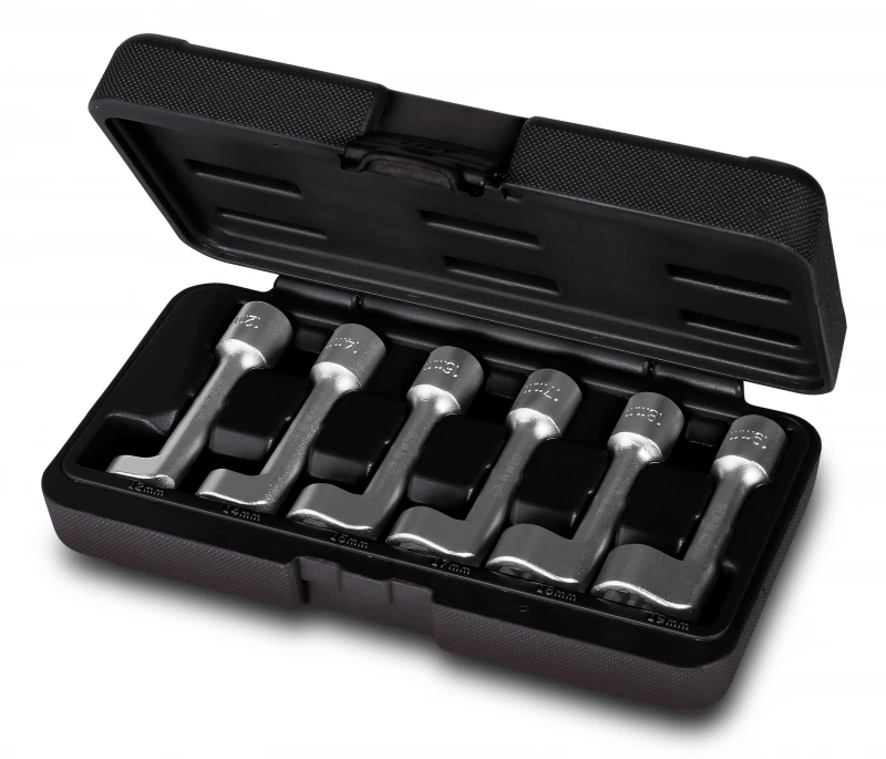 6-delig set van open twaalfkant dopsleutels voor brandstofleiding aansluitingen