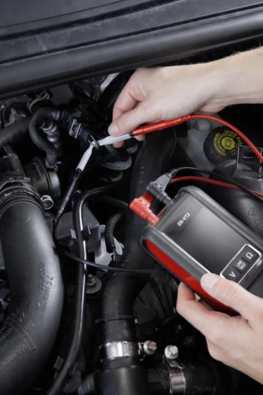 Voltmeter: de ‘Autometer’ meet gelijkspanning tot 49 volt bij lichte voertuigen en zware bedrijfswagens. De ‘line test’-functie is de belangrijkste innovatie van dit product. Hiermee zijn defecte aansluitingen en kabels automatisch en vrijwel onmiddellijk op te sporen.